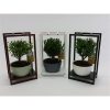 Bonsai in houten rek