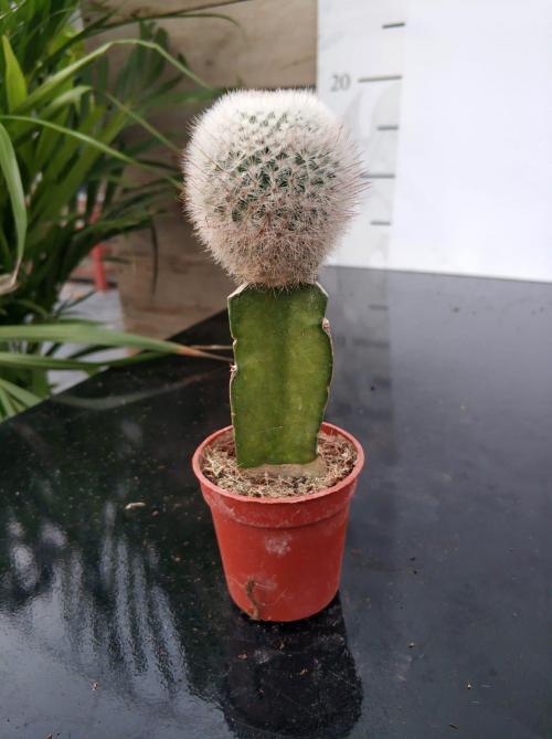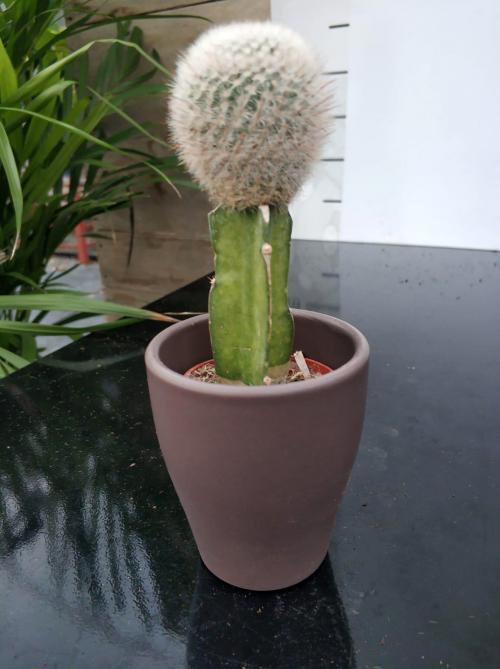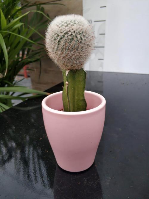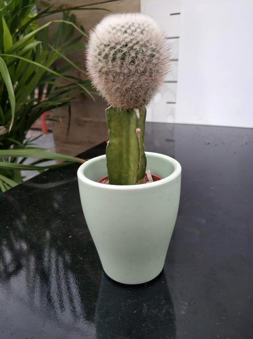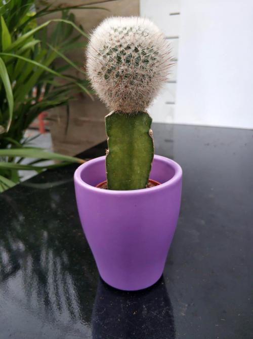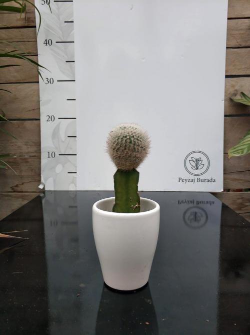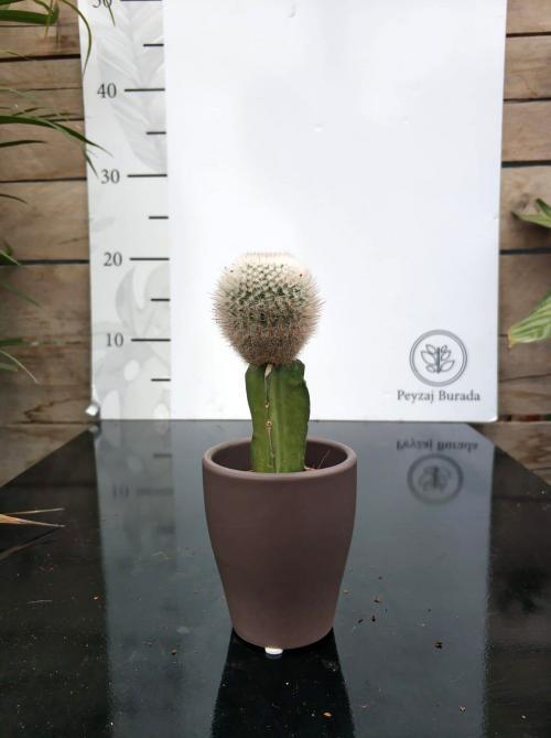 İthal Kaktüs 5.5’luk renkli seramik saksıda çok özel nadir bulunan Beyaz-Gri renkli Aşılı Kaktüs bitkisi.